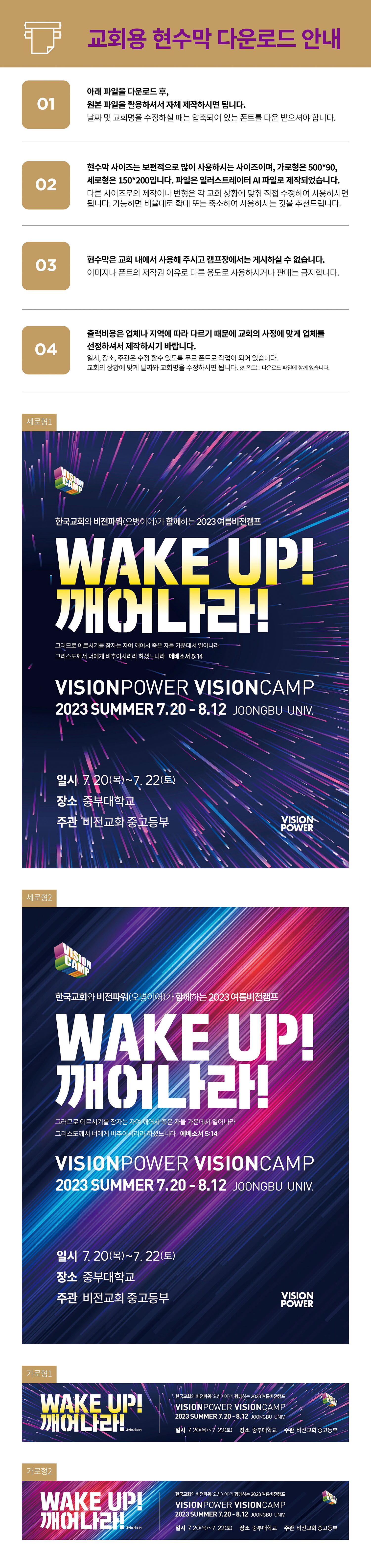 2023 여름 비전캠프 교회 제작용 현수막 파일 (4종)